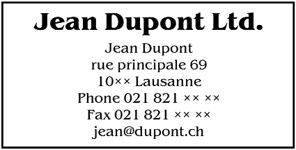 What many don't know: The layout and form of an address is subject to the DIN standard DIN 5008. Detailed information on the current standardization can be found at http://www.din-5008-richtlinien.de. Good to know: According to the current standard, there is no longer a blank line between the street name and the city name. This means that the address stamp for a letter item within Switzerland looks like this: